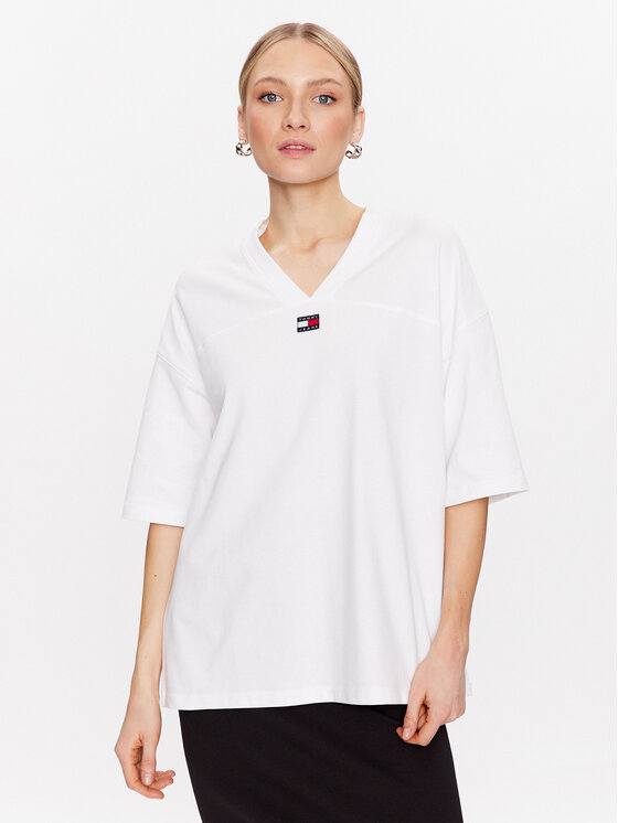 Tommy Jeans T-shirt Badge DW0DW15299 Bianco Oversize