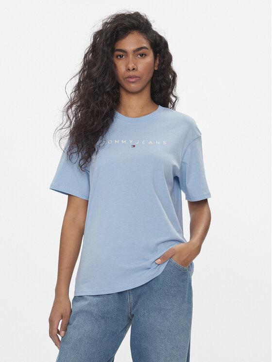 Tommy Jeans T-shirt Tjw Rlx New Linear Tee DW0DW17836 Celeste Relaxed Fit