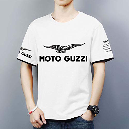 T-Shirt da Uomo a Maniche Corte a Contrasto per Moto Guzzi Stampa T-Shirt Sportive Camicie Casual alla Moda Camicetta Girocollo Top-White||S