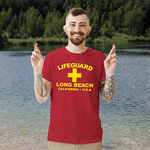 T-shirt da uomo con scritta in lingua inglese "Lifeguard Long Beach California USA", vestito da spiaggia, stile da surfista Red X-Large