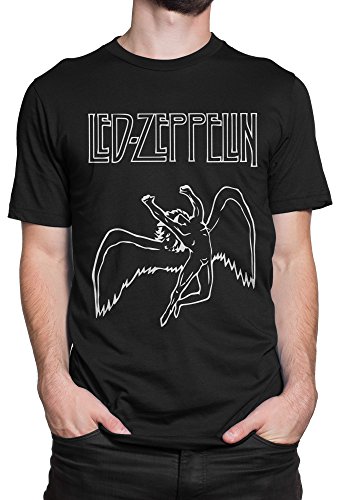 T-shirt Uomo - Led Zeppelin maglietta con stampa rock 100% cotonee LaMAGLIERIA,M, Nero