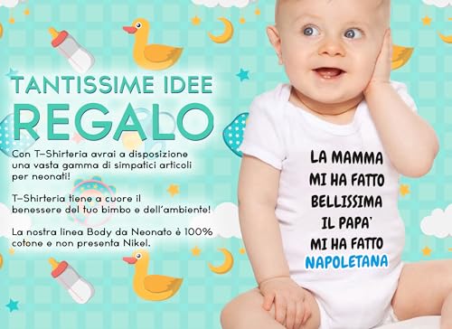T-shirteria Body Neonato Calcio Femminuccia La Mamma mi ha fatto Bellissima, il Papà mi ha fatto napoletana Bimba