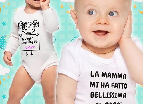 ❤️ PRIMA INFANZIA: Cerca la taglia ideale per il tuo bimbo tra 0-6 mesi / 6-12 mesi / 12-18 mesi / 18-24 mesi e consulta la tabella taglie per una maggiore sicurezza. Body realizzato in Stampa Diretta su Tessuto: Tecnica di Stampa senza uso di pellicole plastiche, ideale per assicurare comodità e mantenere il tessuto morbido, leggero e traspirante. Massimo comfort per uso quotidiano!