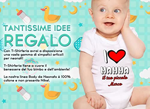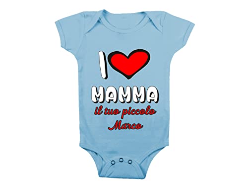 T-shirteria Body Neonato Festa della Mamma Personalizzabile - Io Amo la Mamma, il tuo Piccolo [ SCRIVI NOME ] - Maschietto - Body Celeste - idee regalo