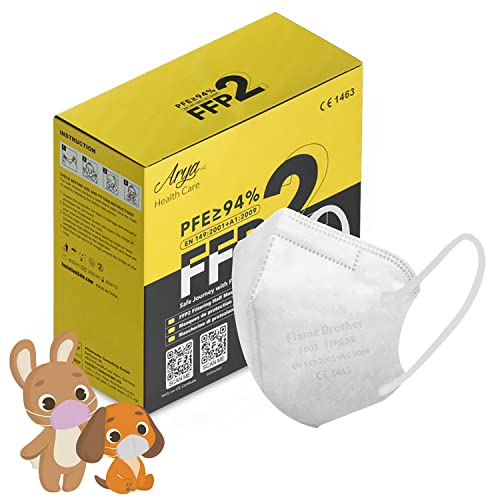 T-Tex Srl Arya HC - Mascherine FFP2 - Confezione da 50 mascherine - Imbustate singolarmente - Prodotto Certificato - Made in EU (Small Bianco 20 unità)
