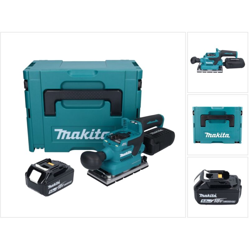 Contenuto della consegna: - 1x levigatrice vibrante a batteria Makita DBO 381 ZU 18 V - 1x modulo AWS WUT01 ( 198900-7 ) - 1x scatola per la polvere cpl. ( 135327-0 ) - 1x coperchio di protezione per la batteria ( 422807-8 ) - 1x piastra di punzonatura ( 451271-6 ) - 1x batteria Makita BL 1850 B 18 V 5,0 Ah - 1x Makita Makpac - 1x inserto coordinato - senza caricabatterie Descrizione del prodotto: La levigatrice orbitale Makita DBO381 è uno strumento potente e versatile per la levigatura di diverse superfici. Grazie all'innovativa funzione Auto-Start Wireless System (AWS), può essere collegata in modalità wireless ad aspirapolvere compatibili per garantire un'efficiente aspirazione della polvere e migliorare la pulizia del luogo di lavoro. Un altro punto di forza di questa levigatrice orbitale è l'impugnatura anteriore rimovibile, che può essere fissata senza attrezzi. In questo modo la levigatura di angoli e spigoli è particolarmente facile e comoda. L'ampia leva di serraggio