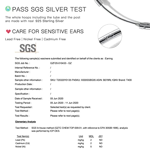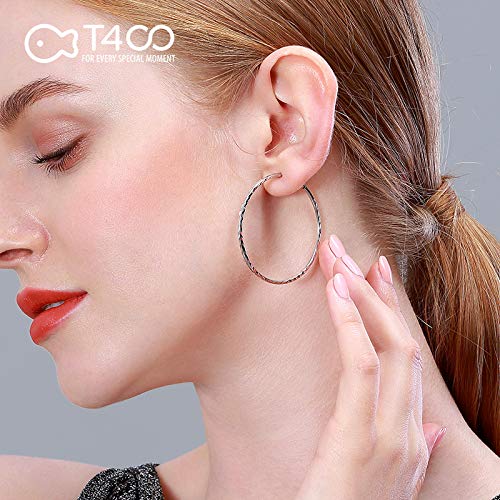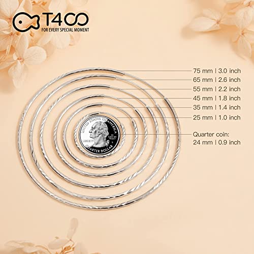 T400 Jewelers Orecchini Cerchio Argento Sterling 925 Diamond Cut Creoli per Donna Sleeper, diametro: 25-65mm