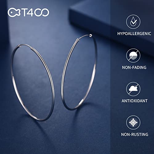 T400 Orecchini Cerchio Argento Sterling 925 per Donna Grandi cerchi Creoli Grande Sleeper 7 cm