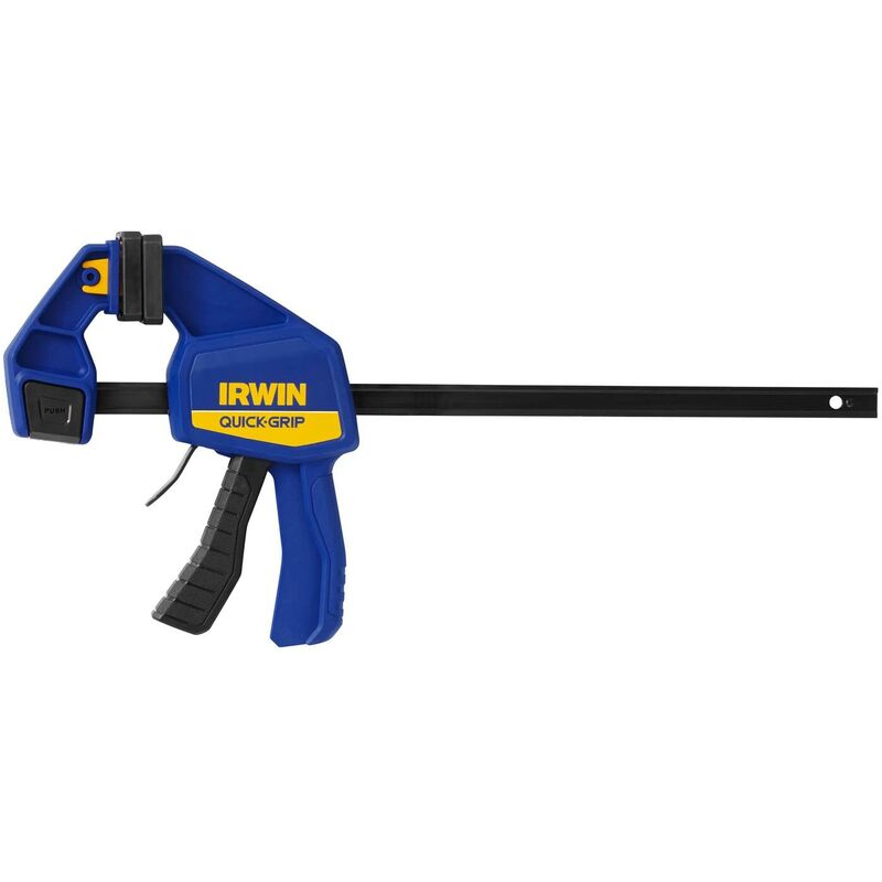 136 kg di pressione di serraggio La barra di scorrimento in acciaio temperato resiste all' inarcamento Allargatore 12/300 mm Il morsetto a barra con impugnatura rapida della Irwin ha la capacità di carico del bloccaggio di 135 kg ed include un sistema di cambio rapido, che trasforma il morsetto in un divaricatore in secondi. Il morsetto è dotato di una ganascia girevole bloccabile che può essere usata su superfici irregolari. Il morsetto a barra ha una costruzione resistente, molto resistente, e cuscinetti quadrati, stile XP, per proteggere la superficie del pezzo lavorato.
