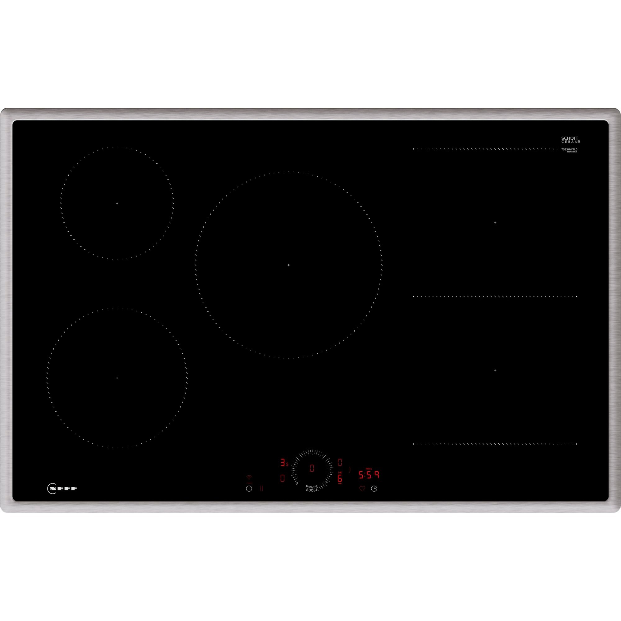 Il piano cottura a induzione autosufficiente T58SHW1L0 di Neff offre cinque zone di cottura con 17 livelli di potenza e una funzione PowerBoost per cucinare, friggere e cuocere a vapore. Grazie alla Combi Induction, le due zone sul lato destro possono essere combinate in una grande per creare spazio sufficiente per pentole di grandi dimensioni, come le teglie. Grazie all''innovativo comando TwistTouch, puoi regolare in modo semplice e veloce tutto ciò che ti serve per cucinare con un tocco o un giro del dito lungo l''anello virtuale TwistTouch. Il T58SHW1L0 può anche essere controllato in modo intelligente tramite Home Connect e, in combinazione con una cappa aspirante corrispondente, si adatta automaticamente al piano cottura. Con il pulsante Preferiti, è possibile avviare i programmi preferiti salvati in precedenza in modo rapido e semplice. In termini di sicurezza, il T58SHW1L0 convince anche per l''indicatore di calore residuo, la sicurezza per bambini e l''orario di spegnimento.