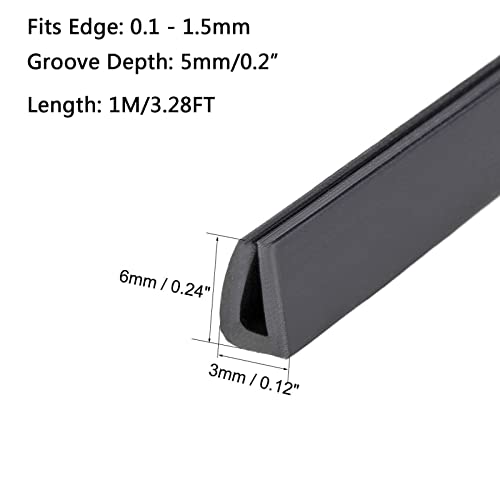 TA-VIGOR Guarnizione a U per bordi, guarnizione a U in PVC nero, per bordi da 0,1 a 1,5 mm, lunghezza 1 m