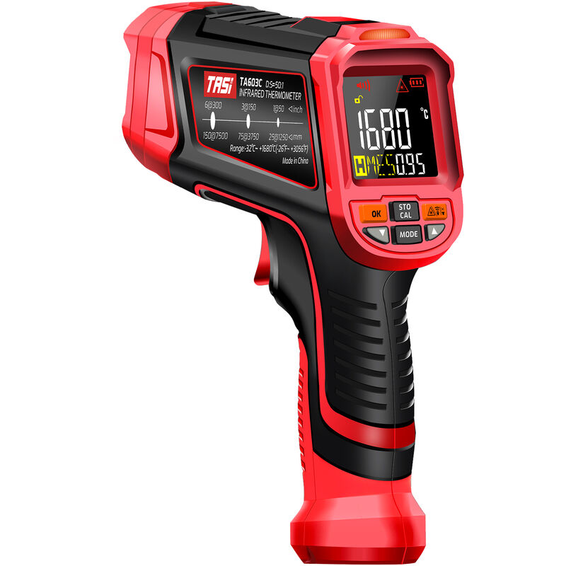Questo termometro a infrarossi portatile e uno strumento ad alte prestazioni e di alta qualita che utilizza computer a chip singolo ARM per la raccolta e l'elaborazione dei dati. Fornisce funzioni quali regolazione dell'emissivita, valore massimo, valore minimo, valore medio, valore della differenza di temperatura, impostazione dell'allarme di alta e bassa temperatura, ecc. Presenta alta precisione, risposta rapida, funzionamento semplice e prestazioni affidabili. Puo misurare rapidamente la temperatura superficiale degli oggetti senza contatto ed e ampiamente utilizzato nei settori petrolifero, chimico, ferroviario, elettrico, tessile, della plastica, della lavorazione dei metalli, del risparmio energetico e in altri settori. Caratteristiche: Ampio intervallo di misurazione per vari oggetti caldi, pericolosi o difficili da raggiungere e supporta anche la misurazione del valore massimo, del valore minimo e del valore medio. Utilizza computer a chip singolo ARM per la raccolta e