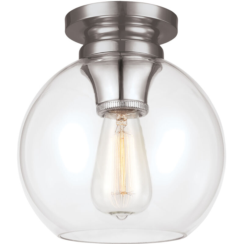 Collezione Tabby LOOK DI TENDENZA Plafoniera a 1 luce. La plafoniera Tabby in nichel lucido coniuga un'elegante silhouette sferica in vetro trasparente con il look di tendenza della lampada a vista.