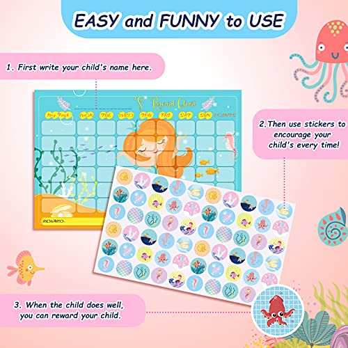12 Tabella Premi con Adesivi Include 6 Grafici Comportamento, 6 Fogli/ 360 Pezzi Grafico delle Ricompense Adesivi Riutilizzabili per Formazione Comportamento Bambini (Sirena)