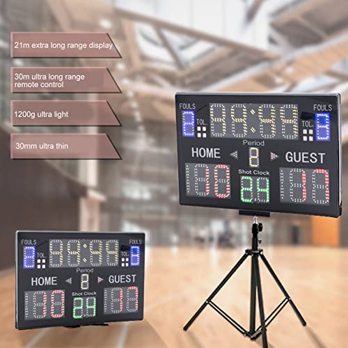 Display a LED a 15 cifre: il tabellone segnapunti elettronico è dotato di un display a LED a 15 cifre e ha un forte altoparlante incorporato che fornisce un punteggio accurato per più sport, tra cui basket e pallavolo. Questa funzione consente di tenere facilmente il punteggio e aiuta a garantire l'equità nelle competizioni e nei giochi.
