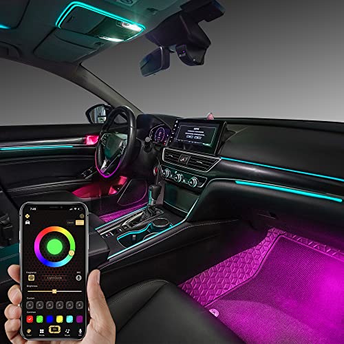 TABEN Kit di illuminazione ambientale per auto RGB digitale da 1,1 mm Cambio di colore a tre zone, APP + RF Remote + Touch + Tasto Pulsante Controllo 16,7 milioni di colori Sincronizzazione musicale