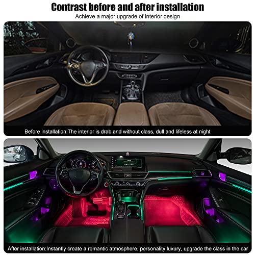 【Solo barra di luce a LED RGB di spessore di 1,1 mm】 Perline a LED RGB nascoste incorporate, larghezza ultra-sottile, 6 mm, pari, pari e morbido. Aumentare efficacemente la durata della vita ed emettere l'illuminazione in modo più uniforme, il risparmio energetico a LED è più rispettoso dell'ambiente. La barra luminosa è flessibile e può essere piegata a volontà per adattarsi al radiante dell'auto originale, rendendola più bella e vicina. Nascosto installato nel gap dell'auto, quasi invisibile.