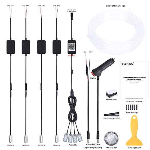 TABEN Luce ambientale Controllo APP Lampada per atmosfera auto Lampada morbida fai da te Refit 5m Fascia in fibra ottica 64 colori Illuminazione vano piedi interno Luce decorativa 1W DC 12V-24V