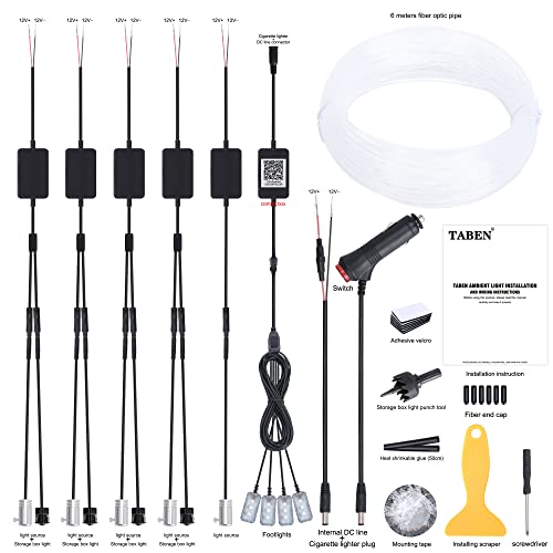 TABEN Luce ambientale interna per auto 64 colori APP Control + luce del piede + scatola di immagazzinaggio Luce Decorazione Kit luce atmosfera Impermeabile fibra ottica atmosfera Strip Luci fredde 6m