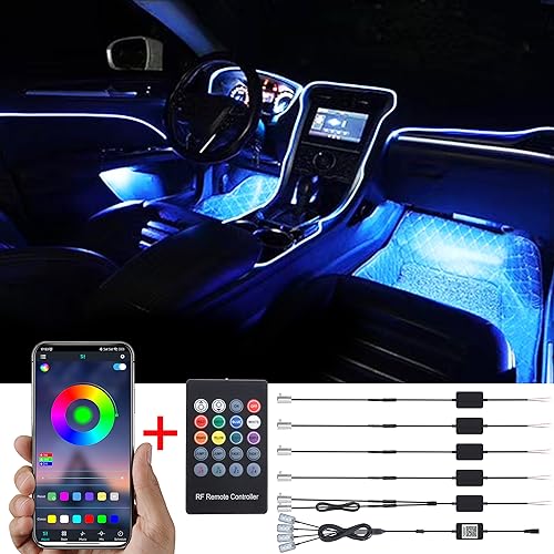 TABEN Luce ambientale interna per auto 64 colori APP Control + telecomando RGB + luce per piedi Car Decoration Atmosphere Light Kit Impermeabile fibra ottica atmosfera Neon Strip Luci fredde 12-24V 8m