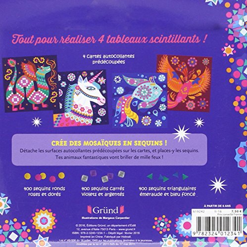 Tableaux Scintillants -1200 sequins - Pochette avec ur 4 cartes autocollantes et 1 200 sequins- À partir de 6 ans