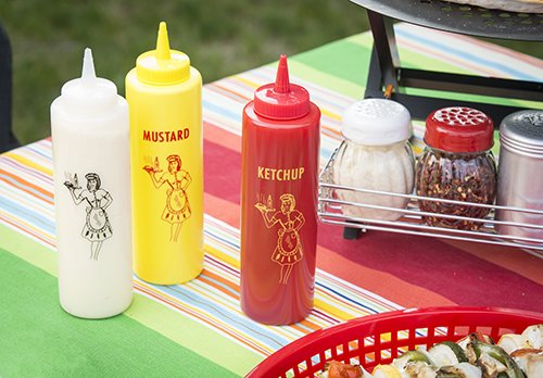 TableCraft Nostalgia Squeeze Bottiglia Dispenser, Trasparente/Rosso/Giallo, 335 ml, Set di 3