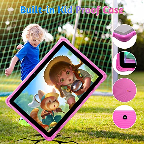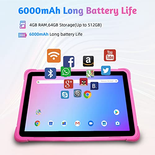 Tablet per bambini da 10 pollici, Android 12 Tablet PC per bambini con 5G WiFi+AX WiFi6, 4GB RAM+64 GB ROM, 1280 * 800 HD Display, 6000 mAh, Bluetooth5.0, penna stilo (rosa)