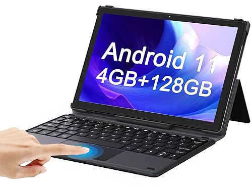 Tablet 10.1 Pollici Android 11, Tablet with Custodia con Tastiera, Octa-Core, 2.0Ghz, 4GB+128GB, 1200 * 1920 FullHD IPS, 5MP+13MP Doppia Fotocamera, 2.4/5.8GHz WiFi, Bluetooth 5.0, 5000mAh