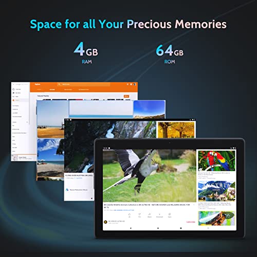 Tablet 10 pollici YOTOPT Android 11, Octa-Core 1.8GHz, 4GB RAM, 64GB ROM (TF 1 TB espandibile), Batteria 6000 mAh, Camera 5+8MP, Tablet con tastiera|Mouse|Custodia|Penna, WiFi, Bluetooth, GPS, Grigio
