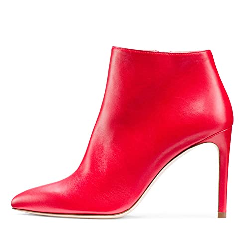 Tacchi Alti a Punta da Donna Stivaletti alla Caviglia Tronchetti in Pelle Stivaletti Corti Tacco a Spillo Alto Cerniera Ankle Boots Moda Scarpe col Tacco da Sera,Rosso,37 EU