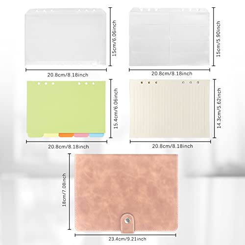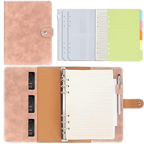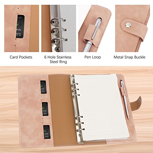 FYY Taccuino formato A5, 6 anelli, in pelle PU, con carta A5, 6 anelli, formato A5 (rosa chiaro, formato A5)
