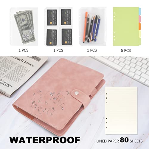 FYY Taccuino formato A5, 6 anelli, in pelle PU, con 80 fogli vuoti, 3 tasche, 6 raccoglitori rotondi, per notebook, diario da viaggio, per carta da disegno A5 (rosa)