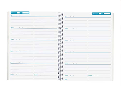 Interno: pagina settimanale. Visione completa di due settimane in paesaggio che consente la scrittura naturale. Rendimento senza data, 46 settimane (valido per un corso lezione).