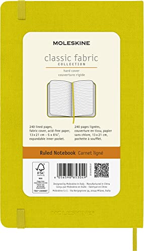 Taccuino Moleskine Classic con Pagine a Righe, Copertina Rigida in Seta e Chiusura Elastica, Formato Large, Colore Giallo Fieno