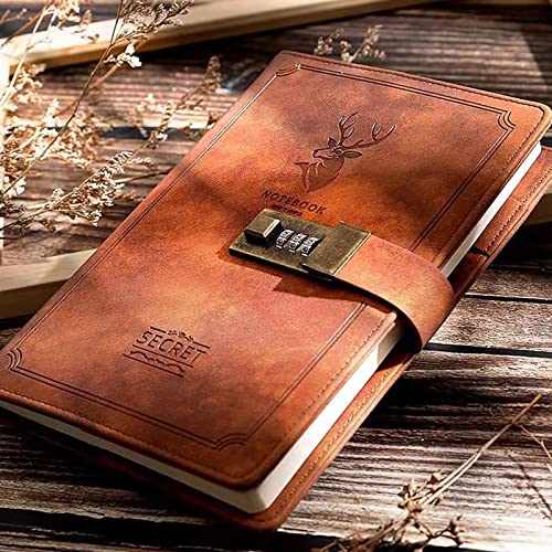 Taccuino segreto vintage in PU -Diario Segreto con Codice - Diario con password A5 - Taccuino con blocco password - Taccuino segreto per ragazze, ragazzi, adulti