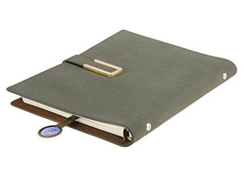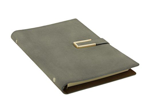 Taccuino/agenda in similpelle, formato A5,con spirale ad anelli, 160 fogli mobili a righe, quaderno per appunti, block notes, taccuino per conferenze con spazio per biglietti da visita e penna Grey