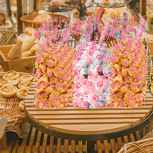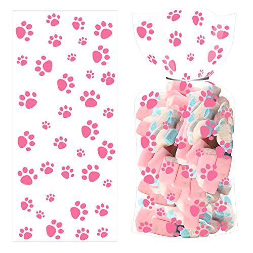 TACHIO 50 pezzi sacchetti di cellophane sacchetti di Natale 12,5x27,5cm sacchetto regalo sacchetti di biscotti sacchetti di biscotti sacchetti di biscotti sacchetti trasparenti sacchetti di cellophane sacchetti di cellophan per regali (Zampe di gatto rosa)