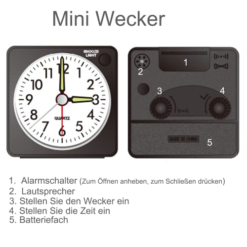 TACHIO Sveglia Mini Dimensioni, Sveglia Analogica, Senza Ticchettio, Sveglia da Viaggio con Luce Notturna e Snooze, Funzionamento a Batteria, Sveglia Portatile per Camera da Letto (Nero)