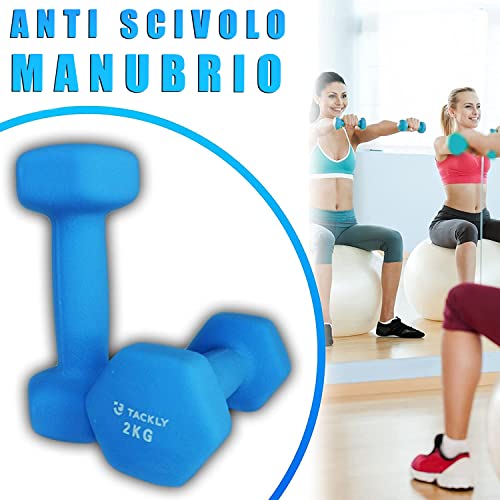TACKLY Set Manubri Palestra in Casa con Elastico Fitness - Kit pesetti in Neoprene Fitness 1, 2 y 3 kg con Bande Elastiche - Atrezzi Pesi Palestra Formazione Donna/Uomo