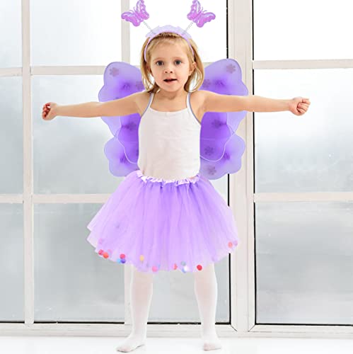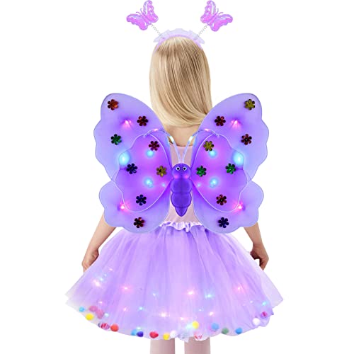 Tacobear Costume Fata Luminoso Ali da Fata Bambina Ali Farfalla LED Tutu Gonna Tulle con Cerchietto Bacchetta Magica Tatuaggi Costume Carnevale Halloween Festa Compleanno Fata Cosplay (Viola)