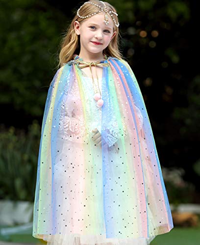 Materiale: Il mantello principessa è realizzato in tessuto di poliestere e tulle, morbido e confortevole. Lavare a mano in acqua fredda e linea asciutta, non candeggiare.