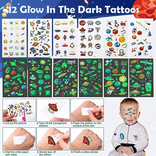 Articoli per Feste Spaziale 48 Pezzi: Riceverai 12 borse con coulisse, 12 braccialetti in silicone (4 design diversi), 12 portachiavi spaziali (6 stili diversi) e 12 tatuaggi temporanei (che si illuminano al buio). Questo set completo di bomboniere è pieno di elementi spaziali. Le nostre forniture per feste spaziali personalizzate sono appositamente progettate per i tuoi piccoli in modo che possano godersi divertenti feste con la famiglia e gli amici.