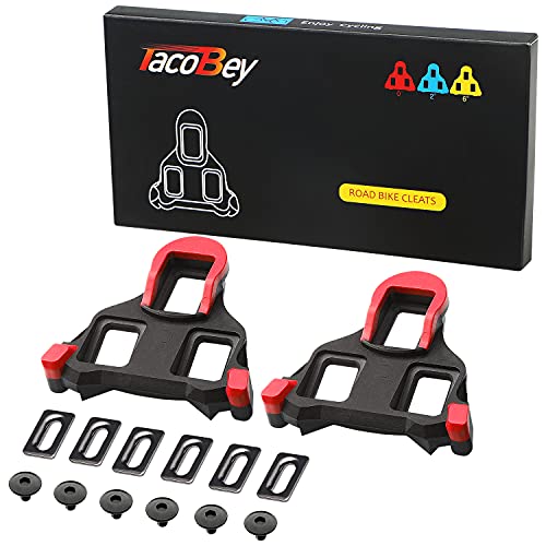 TacoBey - Tacchetti per bicicletta, compatibili con Shimano SPD SL SM-SH, per interni ed esterni, con clip per bici da strada (Rosso-0° flottante)