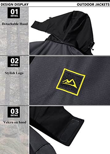 TACVASEN Giacca Outdoor da Uomo Idrorepellente Jacket Trekking Leggera con Cappuccio Staccabile, Grigio