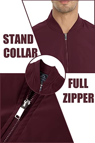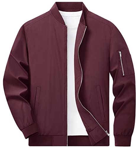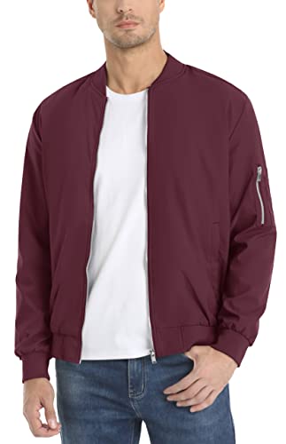 TACVASEN Uomo Giacca Bomber Leggera Jacket Sportiva con Collo da Baseball, Rosso Vinaccia