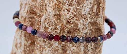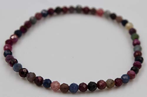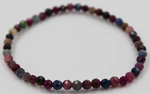 Taddart Minerals Bracciale colorato con rubino e zaffiro con sfere sfaccettate da 4 mm su filo di nylon elastico, fatto a mano
