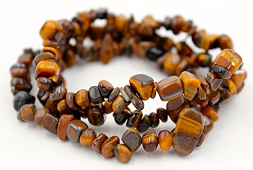 Taddart Minerals - Bracciale con frammenti gialli e marrone, in pietra naturale occhio di tigre montato su filo di nylon elastico, fatto a mano