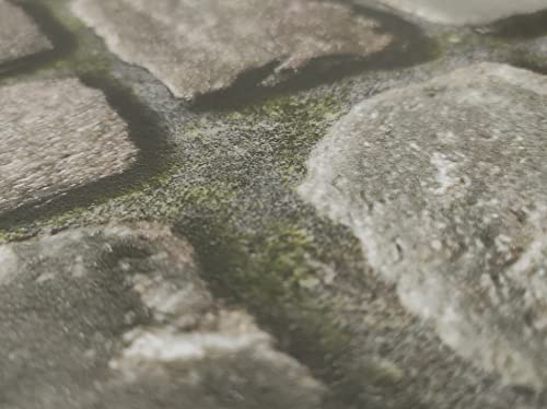 Tadi & Imperio1979 Tappeto Vinile per Salotto, Cucina, Sala da Estar, ingressi, bagno o camera da letto con retro PVC Antiscivolo design digitale di pietre grigie beige con muschio