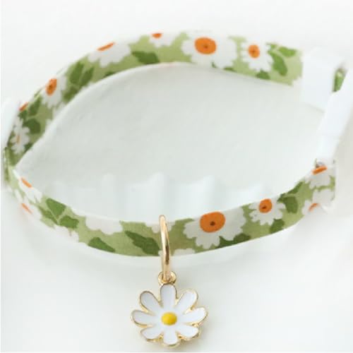 Aspetto alla moda: questo collare per animali domestici è progettato con bellissimi motivi floreali, colori freschi, con un piccolo ciondolo dorato e un fiore. Lo stile è alla moda e bello, molto adatto come decorazione abbinata e un regalo squisito per i vostri animali.