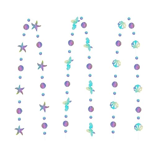 ★La confezione include: 3 decorazioni per feste a forma di sirena,conchiglie, sirene e stelle marine. Ogni decorazione è lunga 4metri, che è molto adatta come bella decorazione di sfondo.